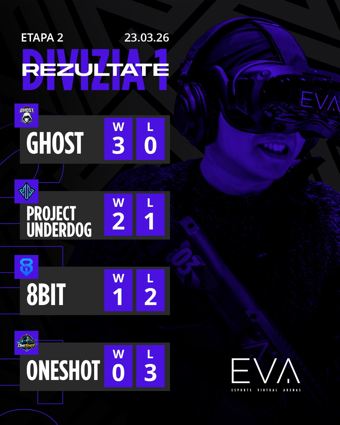 8BITX, the 8BIT Esports academy squad, takes 2nd place in EVA Bucharest League Division 3 Round 3 with a 2-1 series win over RunToSip and a 0-2 loss to Unknowns. Full match results, map scores and standings.