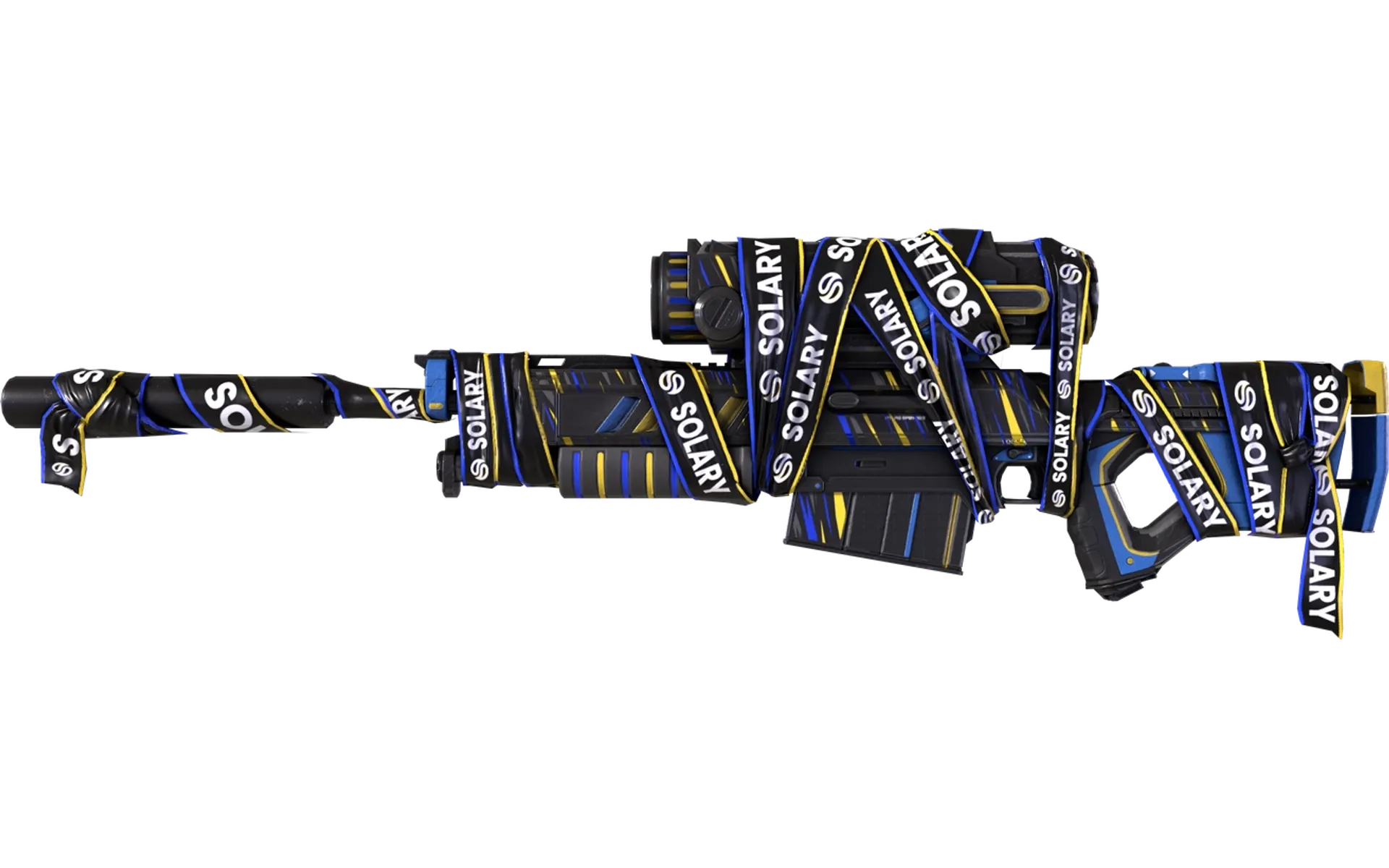 Exclusive Solary weapon skins. Available now in the EVA store — wear the gold, own the spotlight.