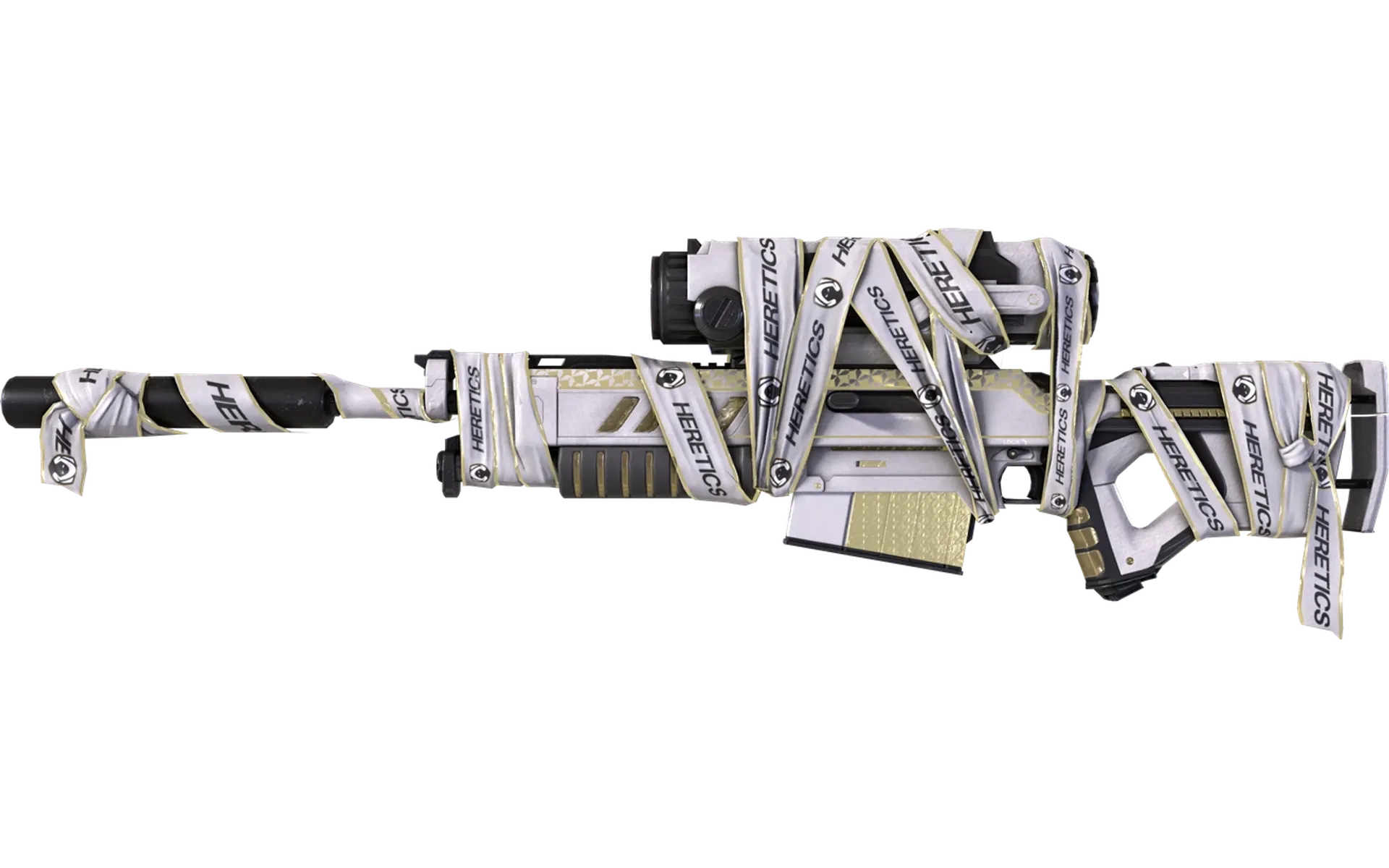 Exclusive Team Heretics weapon skins. Available now in the EVA store — wear the gold, defy the meta.